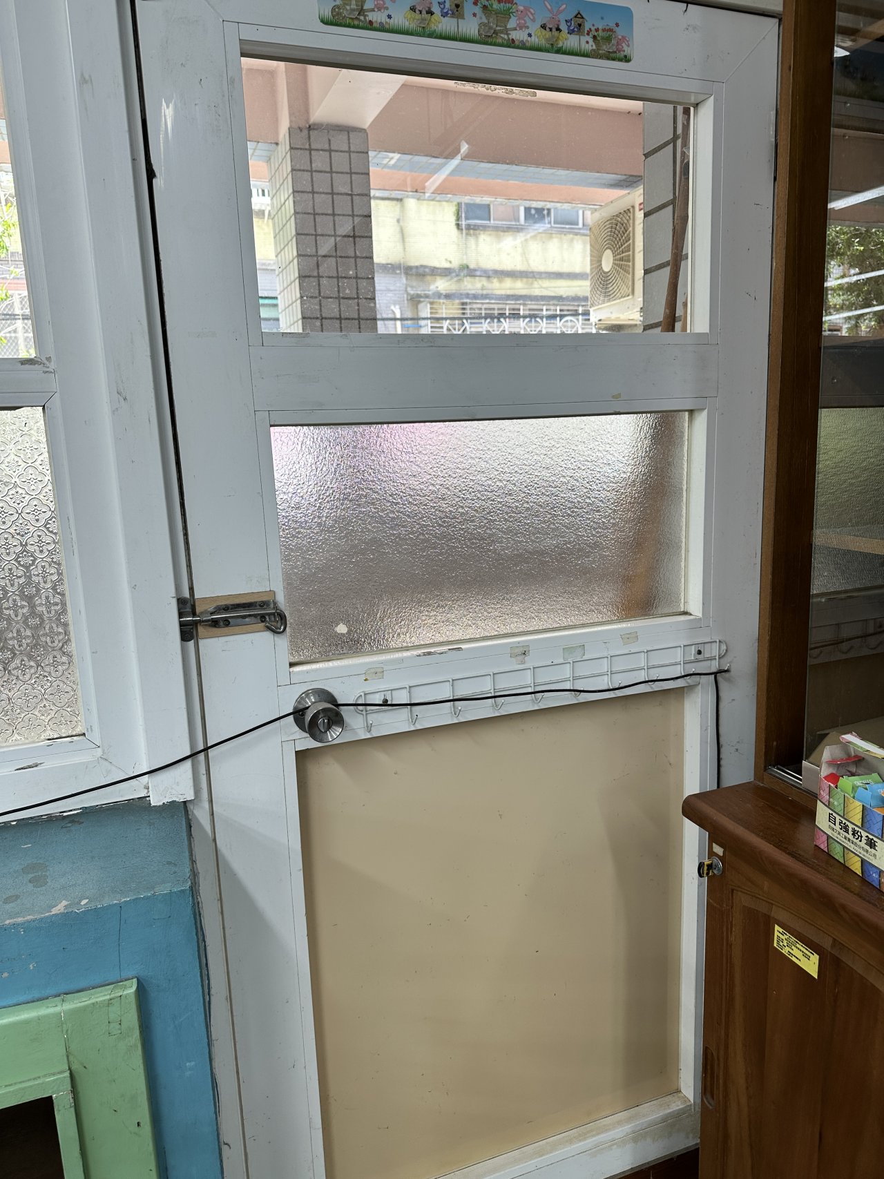 如照片,教室的音源線直接從門的中間走過,造成門無法開啟,請協助從門上方走線,感謝。
