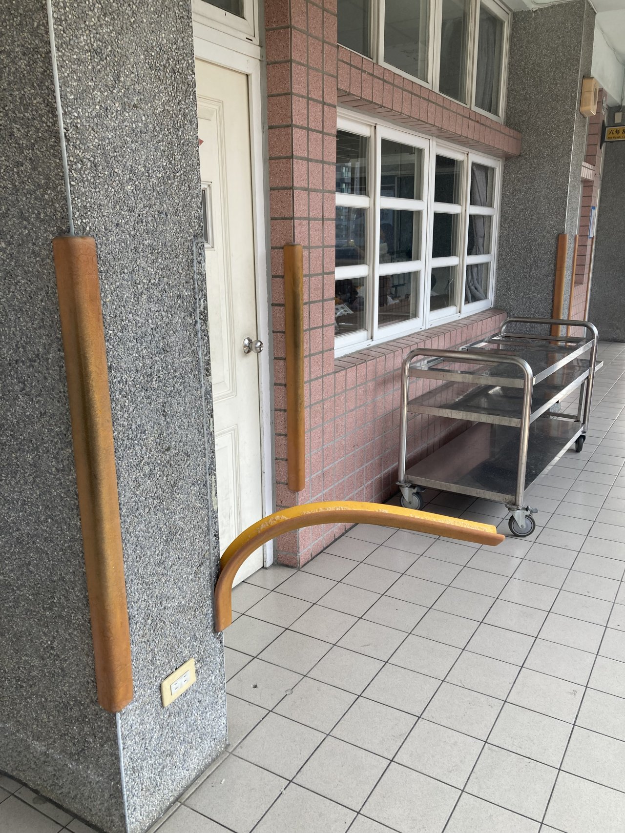 608 教室外走廊防撞條脫落,行走可能有危險。