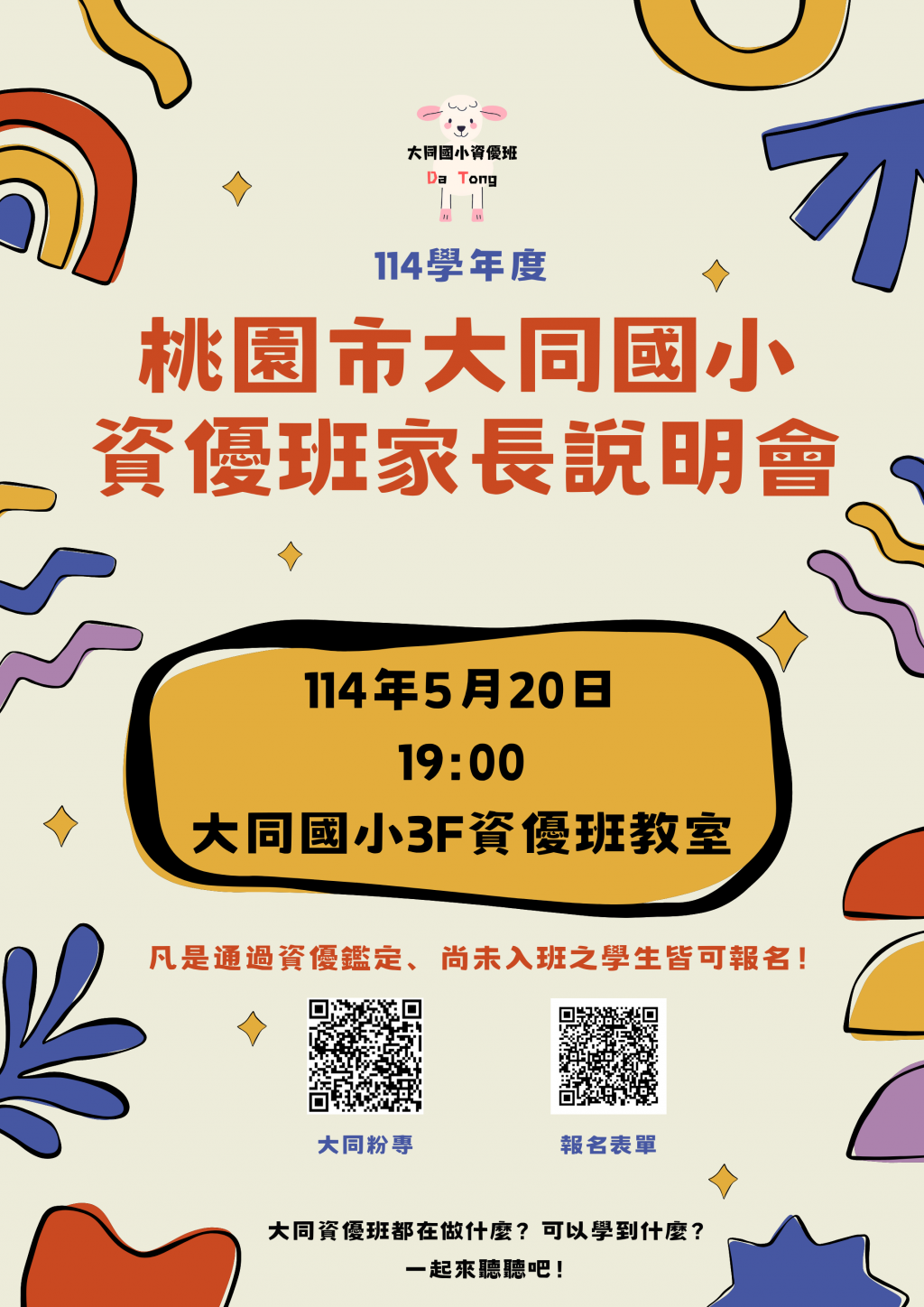 二、 | 為使家長充分了解本校資優教育課程規劃以作為安置學校之參考,特舉辦此說明會,歡迎家長踴躍參加。 |