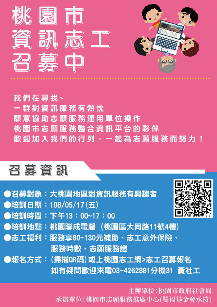 (三)報名方式:請逕至桃園市志願服務整合資訊平台/志工召