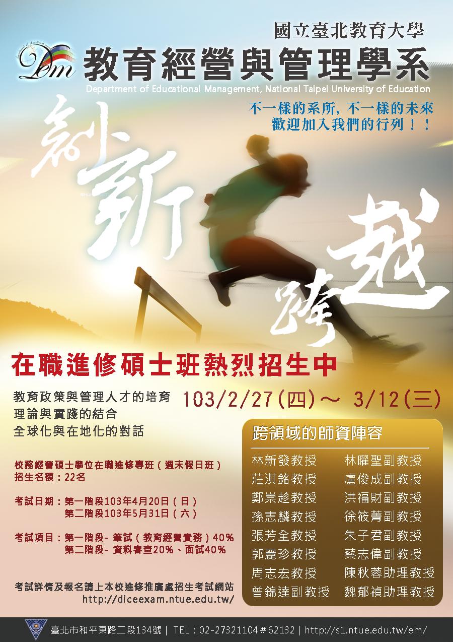 國立臺北教育大學教育經營與管理學系校務經營碩士學位在職進修專班招生資訊