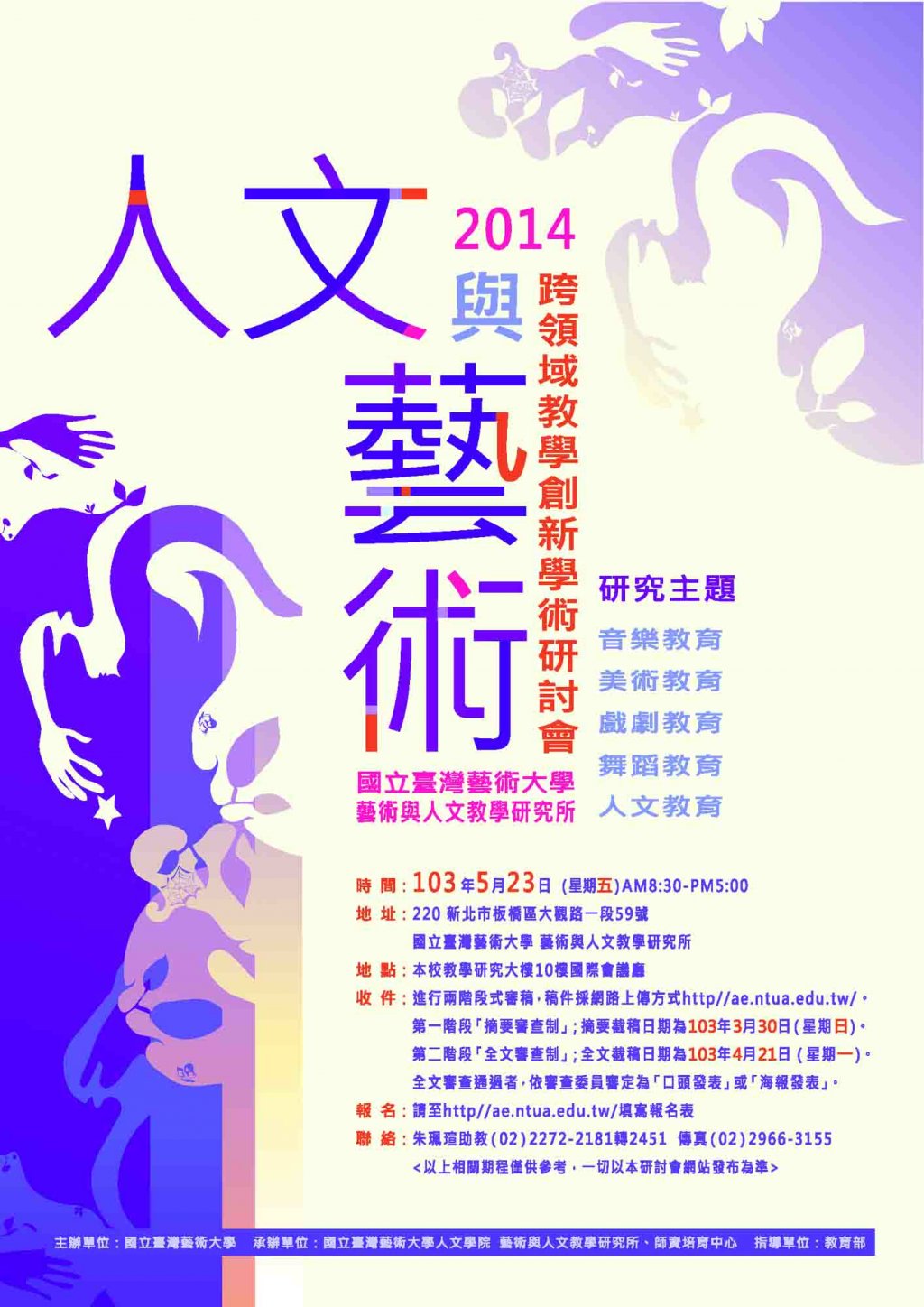 國立臺灣藝術大學舉辦「2014人文與藝術跨領域教學創新學術研討會」訊息