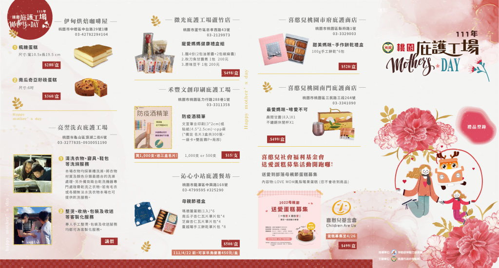 桃園庇護工場推出各式母親節禮盒,歡迎選購,以促進身心障礙者就業。