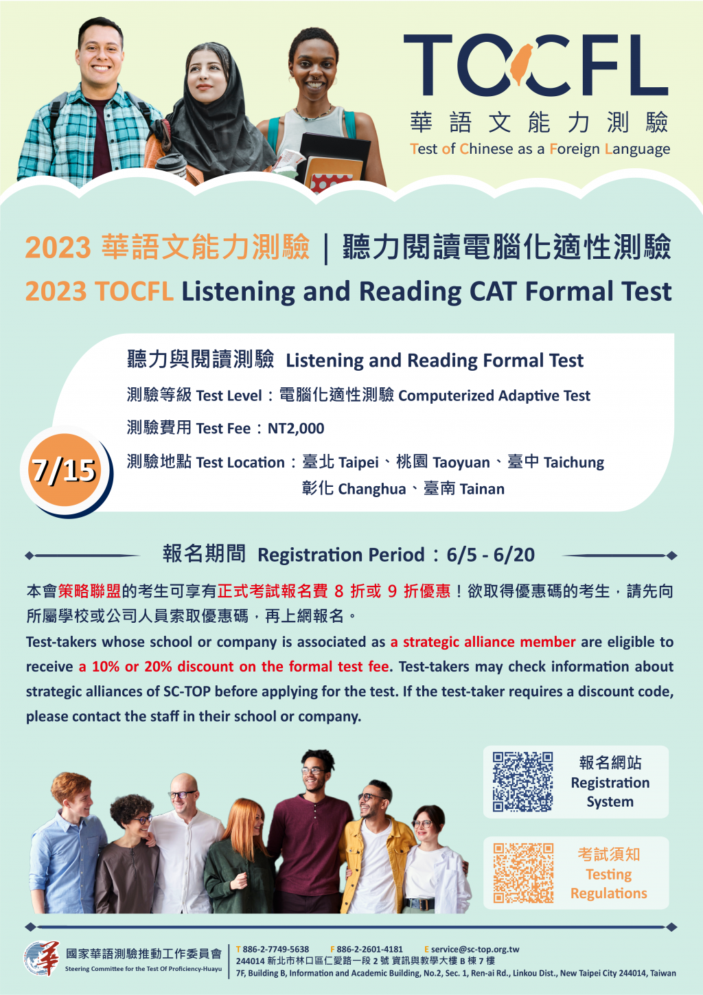 | 主旨: | 轉知國家華語測驗推動工作委員會辦理「華語文能力測驗」112 年 7 月正式考試事宜,請協助公告周知並鼓勵踴躍報考,請查照。 |