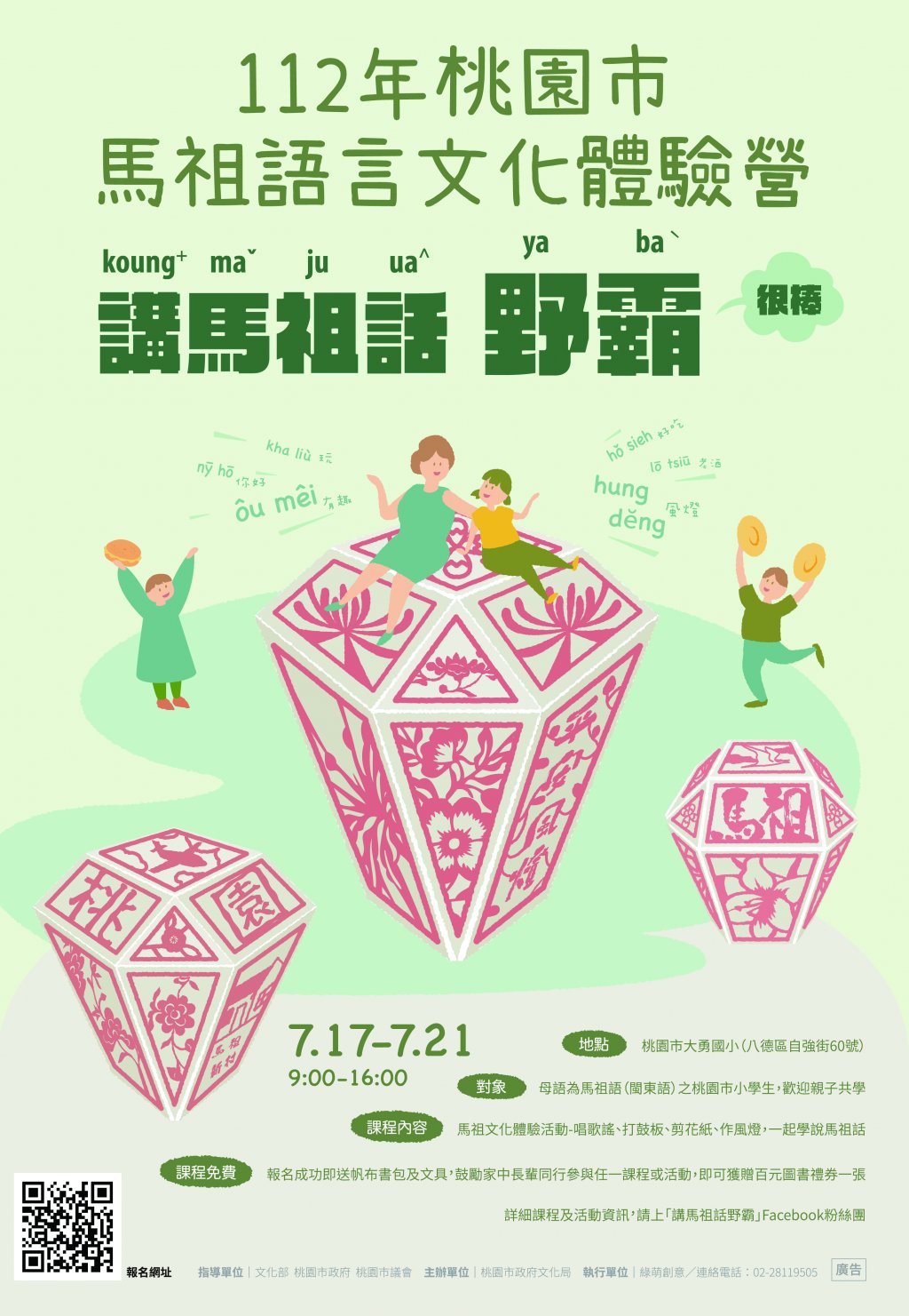 主旨: | 檢送本局辦理「112 年桃園市馬祖語言文化體驗營」宣傳海報電子檔 1 份,請協助辦理活動宣傳事宜,請查照。 |