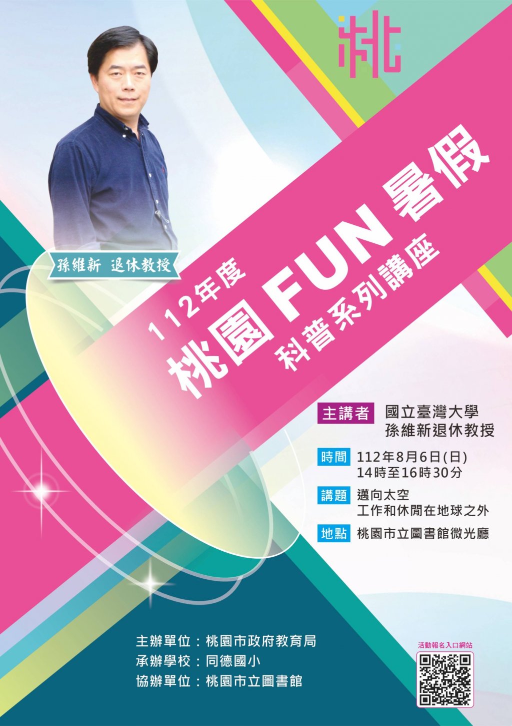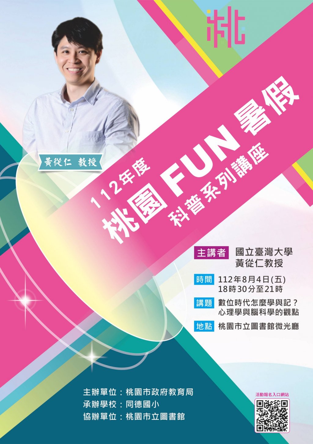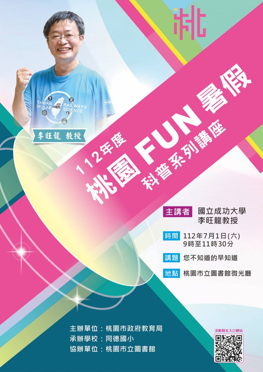 主旨: | 有關本市 2023 桃園 fun 暑假 112 年度暑期科普講座,請貴校協助公告周知並鼓勵學生、家長及教師踴躍報名參加,請查照。 |