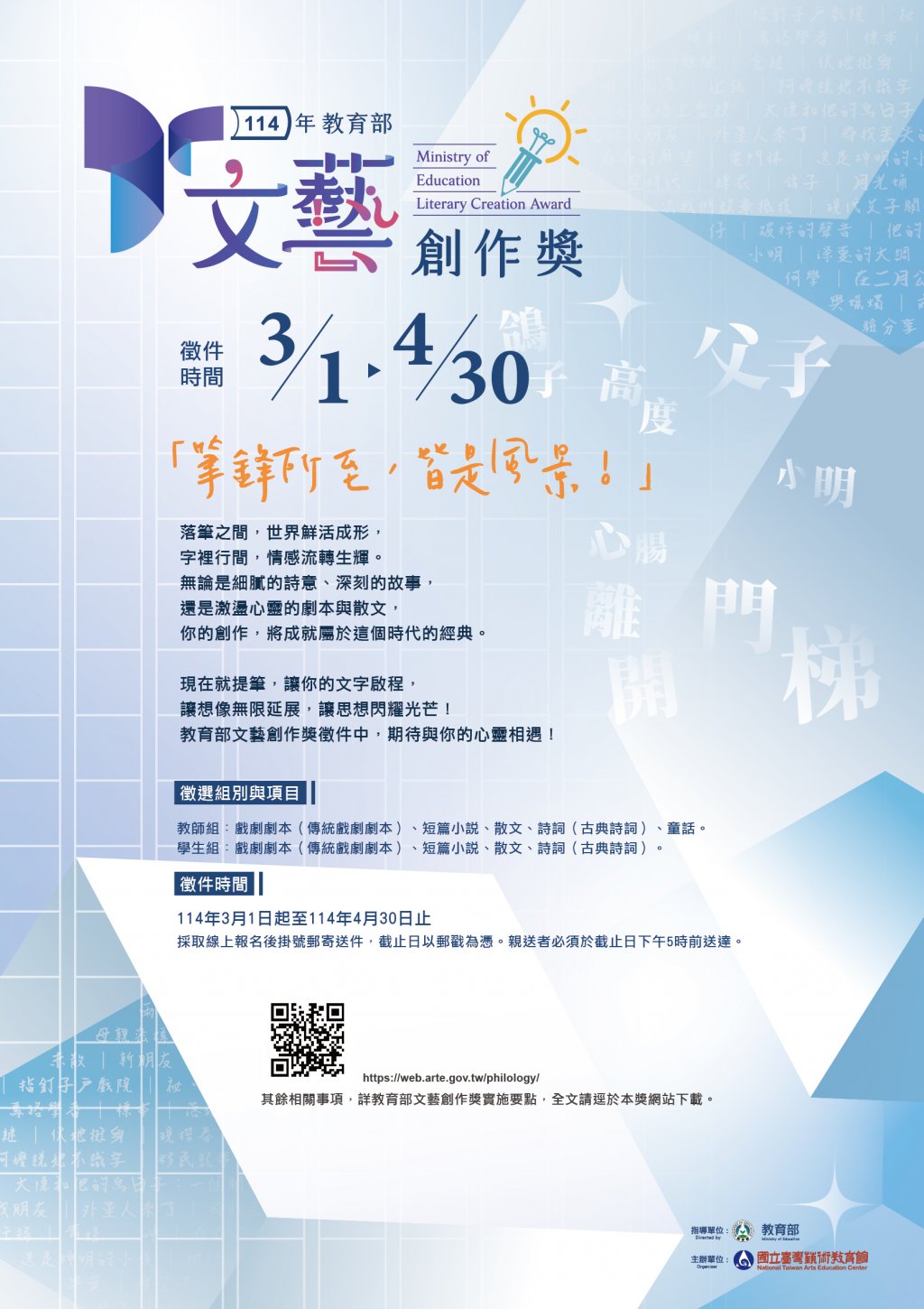 一、依據國立臺灣藝術教育館 114 年 2 月 18 日藝視字第 1140200041 號函辦理。